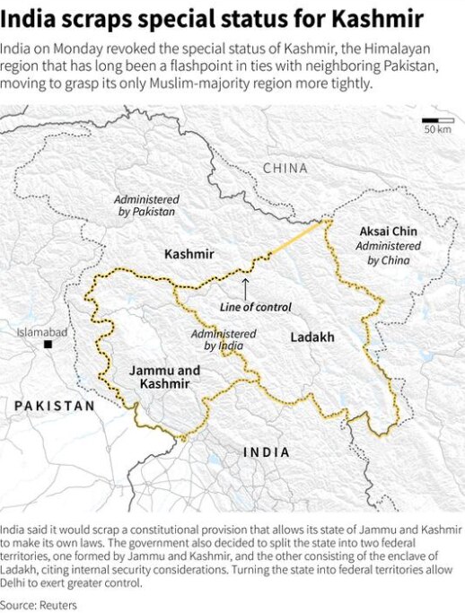 Indian Controlled Kashmir Stripped Of Statehood Drawing Condemnation From China And Pakistan Abc News